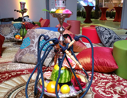 Breng Cairo, Marrakesh of Istanbul naar uw feest! Met bedoeïenententen, tapijten, grote kussens in fleurige kleuren, koperen Kasba-lampen, kleine tafeltjes met wierook, diverse waterpijpen en tal van waslijnen waaraan allerlei hippie-producten (zogenaamd) te koop worden aangeboden: kleedjes, strohoeden, tierelantijntjes, enz. Wij kunnen een Arabische markt en een bedoeïenendorp organiseren als decoratie voor uw feest. Mensen kunnen gewoon gezellig op de kussens zitten, en buikdanseressen dansen op mooie Arabische muziek.
